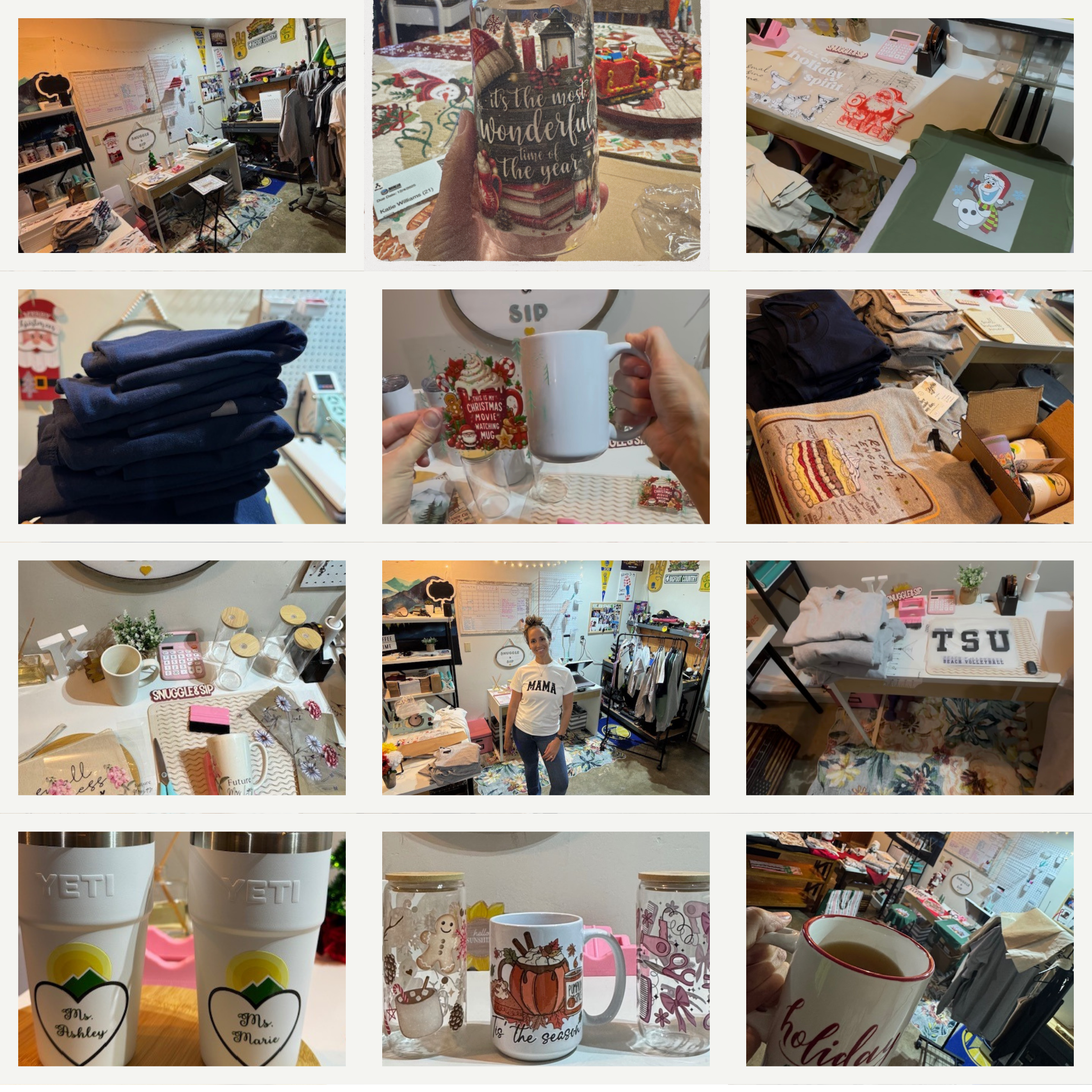 "Katie created some of the cutest Christmas gear & she can ship to you! Thank you, Snuggle & Sip, for my cute sweatshirt!"