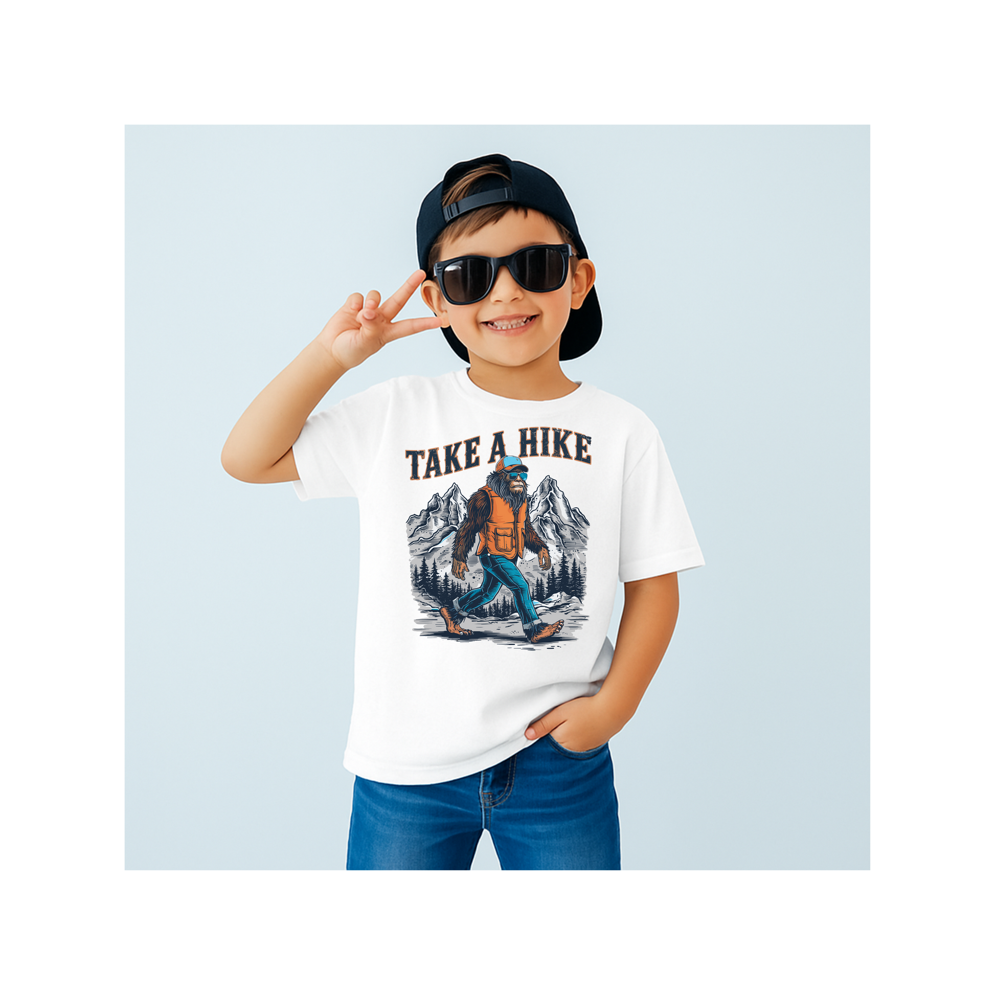 Esta camiseta infantil "Bigfoot Take a Hike" es suave, cómoda y perfecta para el día a día. Nuestras camisetas infantiles presentan un diseño de alta calidad en una prenda ligera y transpirable que tu hijo querrá usar una y otra vez.