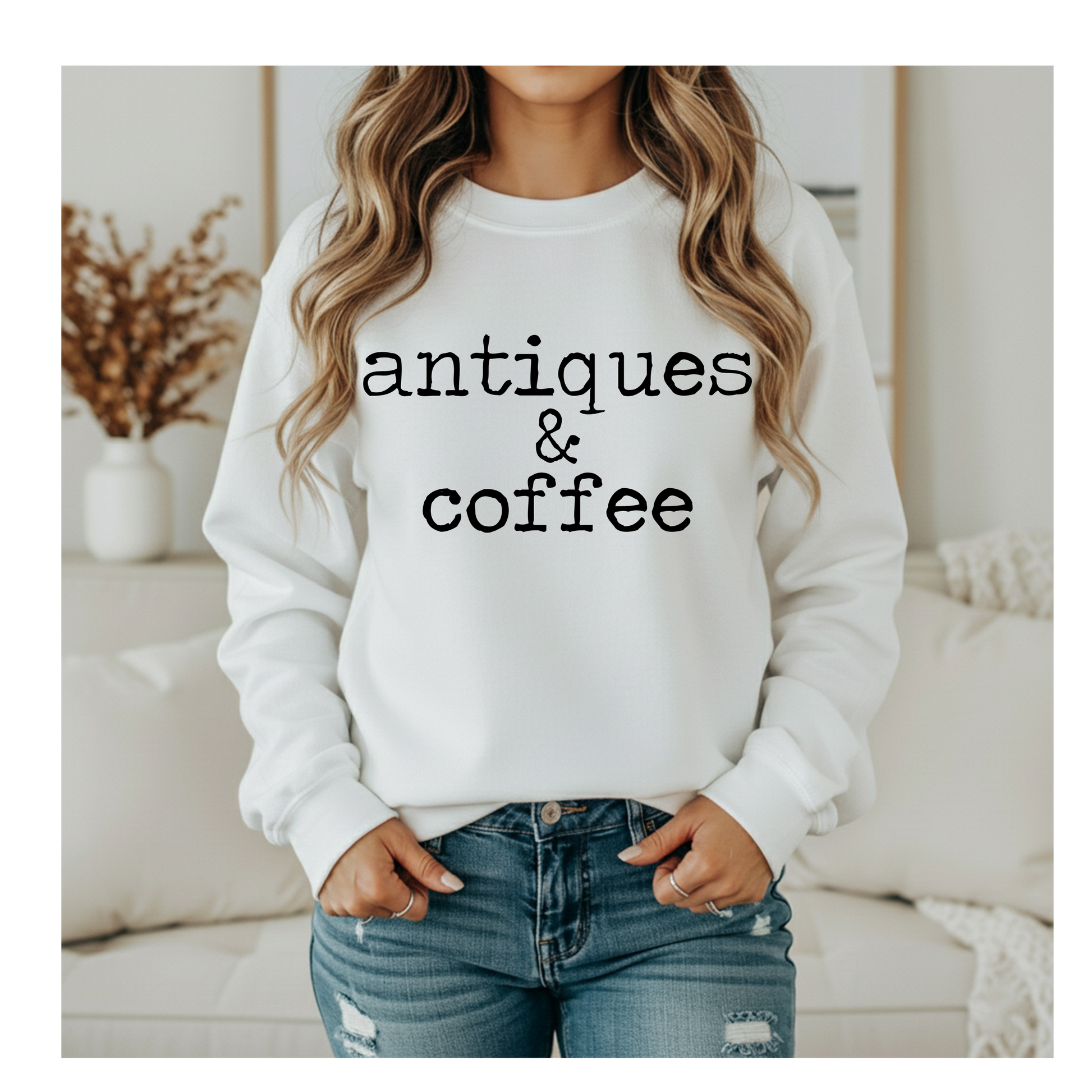 Cozy, casual, and full of charm, this crewneck features a soft fleece interior and a relaxed unisex fit for everyday comfort. Made to order & pressed for lasting quality, it's perfect for slow mornings, antique shopping days, and coffee runs.