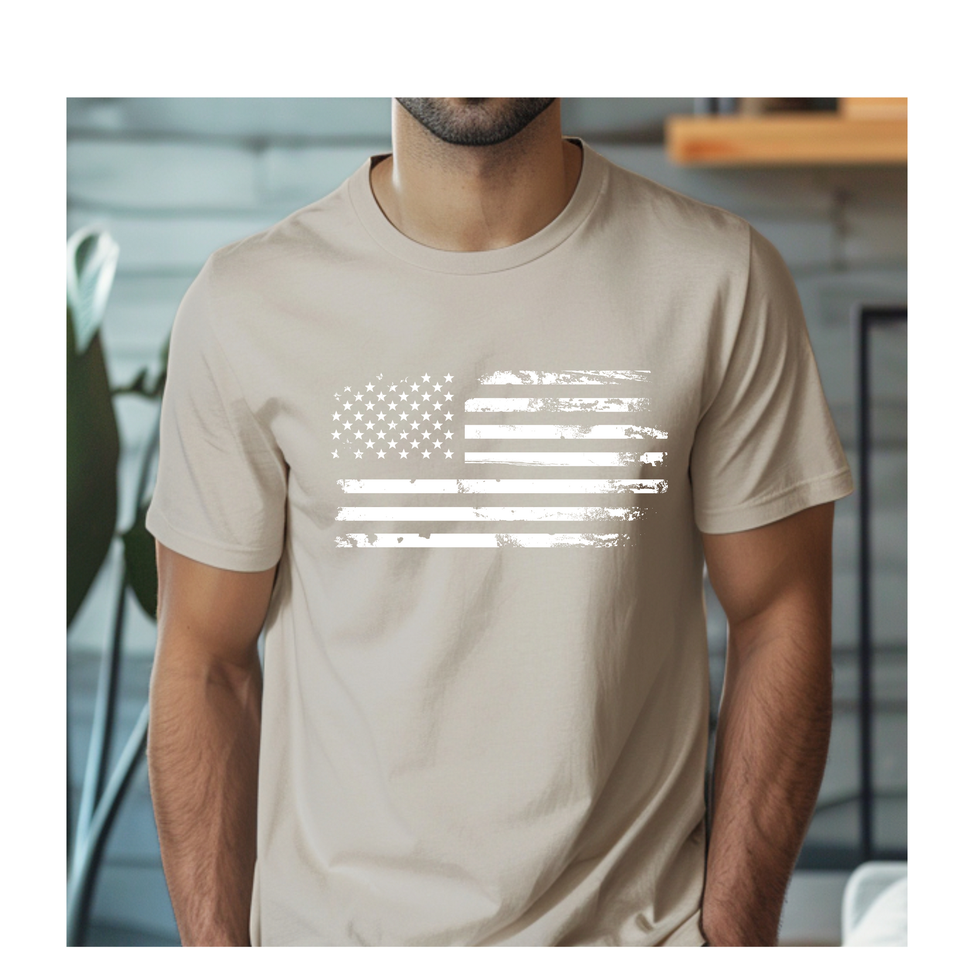 Celebrate America in everyday comfort. This distressed-American Flag T-Shirt features a classic patriotic design on a soft, breathable tee with a relaxed unisex fit. Made to order with care for lasting quality and all-day wear.