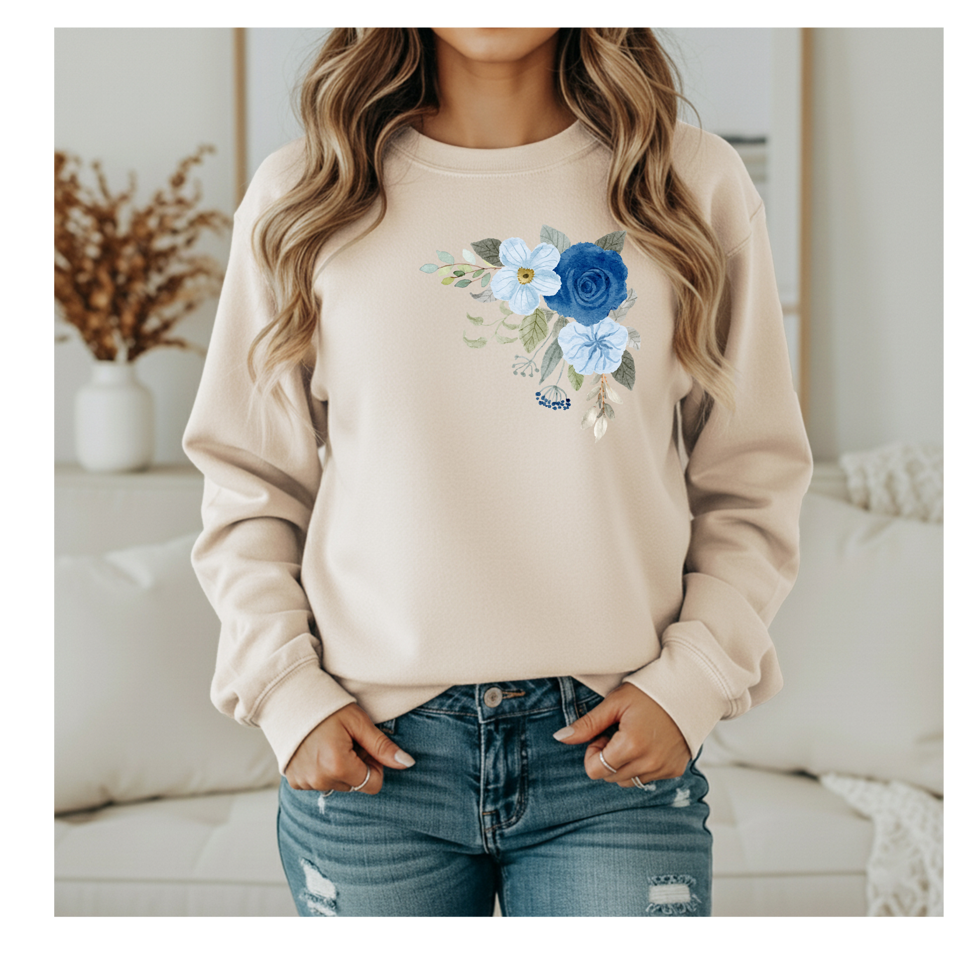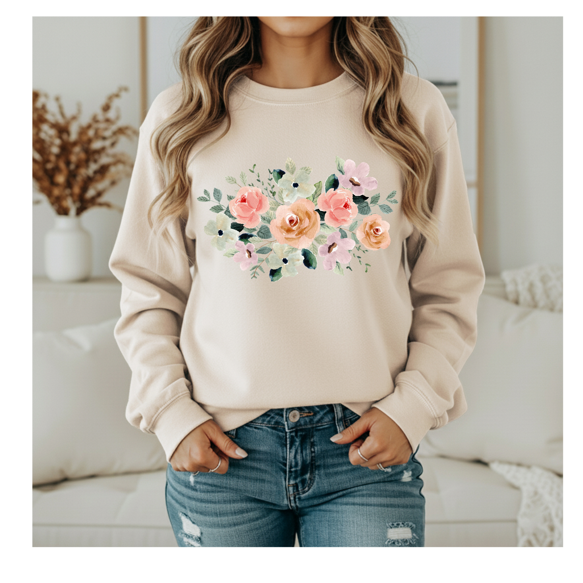 Here you'll find a few different floral arrangements - each are soft, cozy, and full of charm. This simple, yet elegant crewneck is a great for all ages & has a relaxed fit for everyday wear.