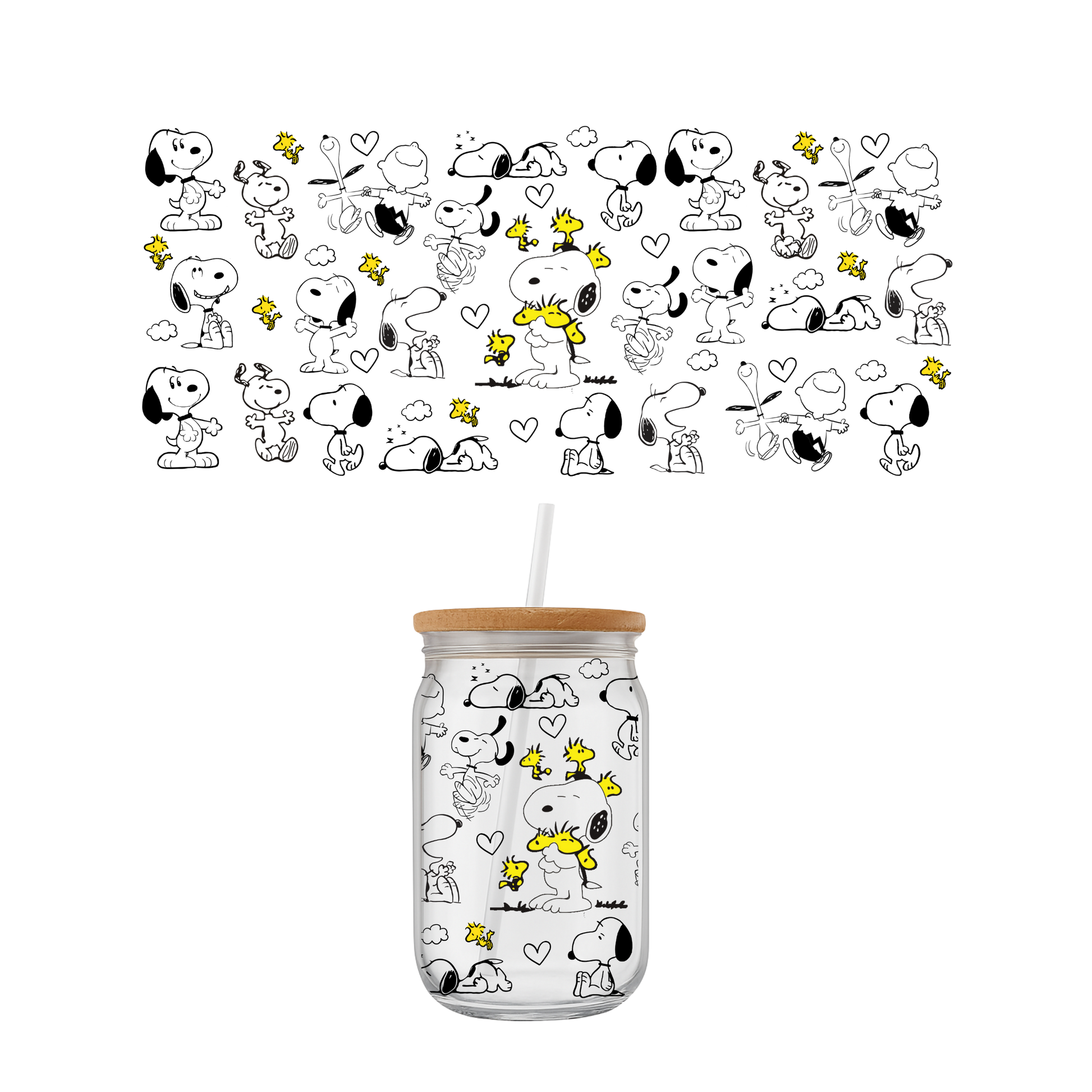 A pretty, everyday glass cup featuring a cute Snoopy design. Perfect for iced coffee or your favorite cold drink. Made to order with care and designed to add a cozy touch to every sip.