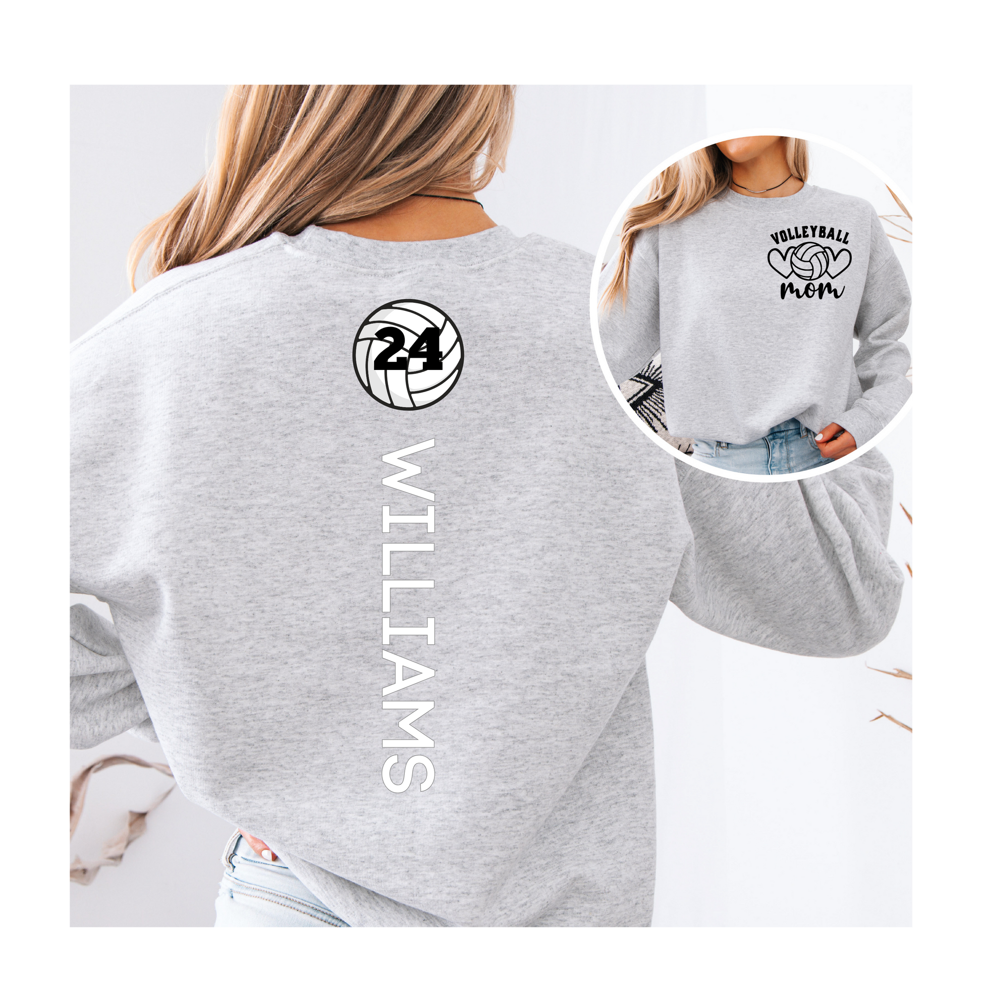 Cheer on your favorite player in style! The Volleyball Mom Crewneck features a sweet volleyball heart design on the front and allows you to customize the back with your player's name and number. Cozy, made-to-order, and perfect for game days, tournaments, or everyday wear.